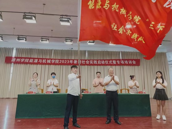 会上,团委书记王思介绍了英国be365官网2023年“三下乡”暑期社会实践活动工作方案;党委书记李敬华为同学们进行了从严治党精神以及党的二十大的讲解并为志愿者团队授予了旗帜;随后,实践团员工代表张成栋进行了发言并带领全体志愿者进行了宣誓。