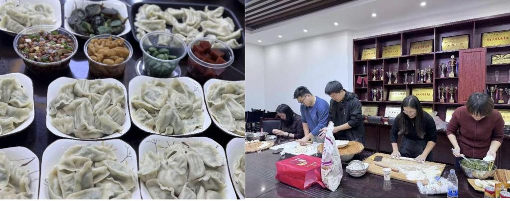 12月06日,时值大雪,来参加活动的老师们在启智楼0359欢聚一堂。大家分工合作,有和面的、有切菜的、有拌馅的,有压皮的,有包饺子,其乐融融,既享受了亲手制作美食的快乐,又增进了彼此的了解和情谊,也谈论着传统文化与美食之间的关系。