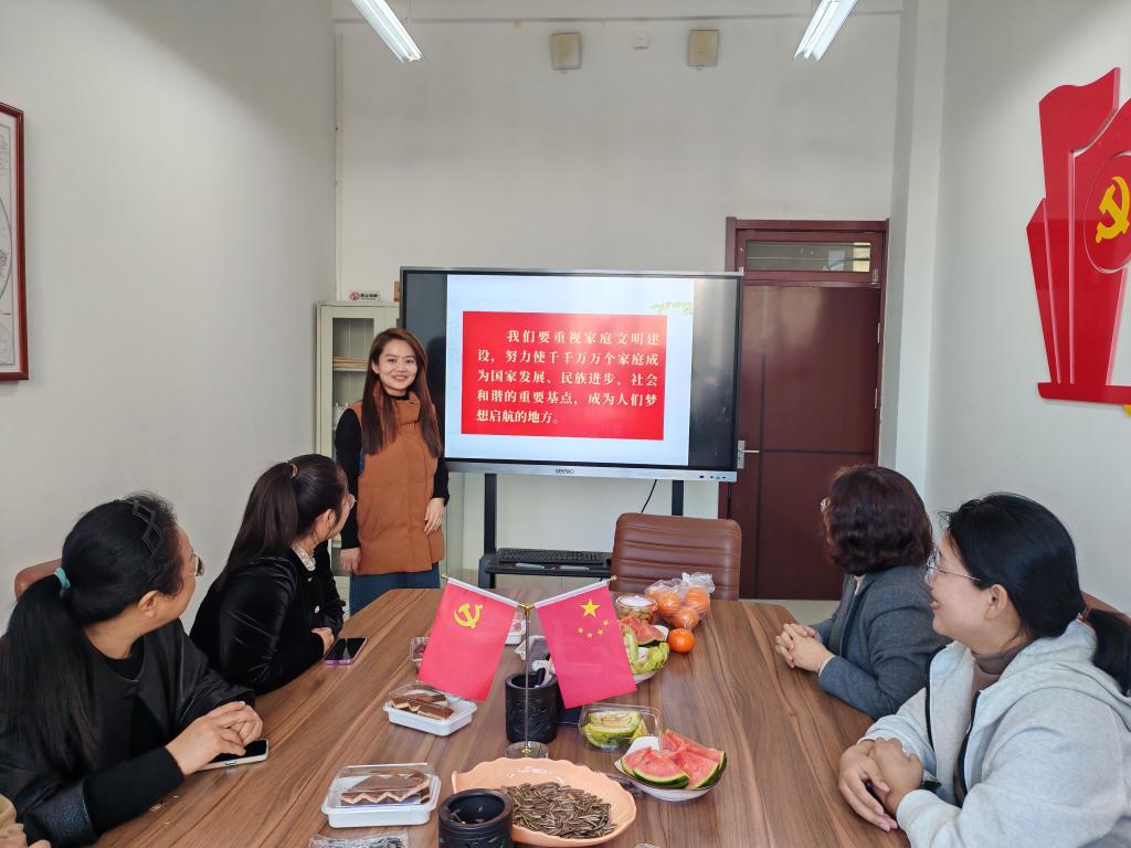 活动中,老师们结合工作实际解读习近平总书记重要讲话精神,作为新时代的女性,要积极投身到社会中去,实现自身价值;结合个人生活体悟,解读在家风建设中女性的重要作用;结合“家国一体”观念,阐述家庭在国家发展、民族进步和社会和谐中的基点作用,将女性在家庭中的作用发挥,与民族、社会、国家的发展紧密结合了起来。