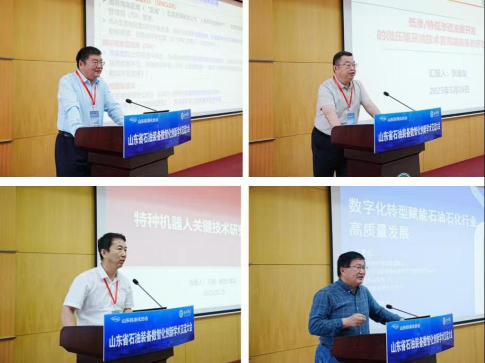 李甲亮致辞指出,本次会议既是探讨行业前沿技术的重要平台,也是推动公司相关学科发展的新契机。希望通过学术交流凝聚共识,与高校、科研院所及企业协同共建创新生态,为石油装备数智化创新提供高校智慧。德州市科学技术协会主席王新志,山东省科学技术协会副主席(兼)、中国石化胜利油田分公司高级专家王涛先后致辞指出,本次大会以石油装备数智化创新为主题,是山东石油装备领域践行创新驱动发展战略的又一重要实践,希冀有力促进全省相关团队建设和产业发展,期待各方携手共同谱写石油装备数智化转型的山东篇章。