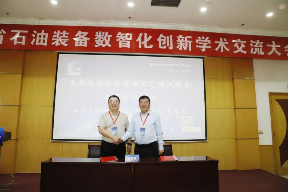 会议进行了电控液驱地面增压工艺测试服务专项合作签约仪式及德州市科技副总聘书颁发仪式。活动期间,与参会专家深入德州华海石油机械股份有限公司、德州大陆架石油工程技术有限公司进行实地调研,详细了解德州在石油装备数智化创新的实践成果与创新经验。