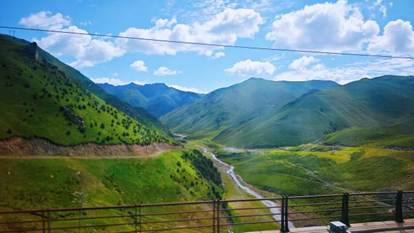 行进途中,车窗外风光随地域变换渐次铺展:从关中平原的田野村落,到渐入视野的黄土高原沟壑,再到河西走廊的戈壁绿洲;从张掖的丹霞地貌,到新疆的戈壁与沙漠,不同地貌景观接连呈现,勾勒出西行路上的独特画卷。队员们不时眺望窗外,记录沿途景致,交流着对前方行程的期待。还看到曾经课本上的草方格治沙,被具象化地呈现出来,已不再是一个抽象的概念,而是变成了眼前清晰、生动的实践。草方格如同一张巨大的网,覆盖在沙地上。这些由麦草等材料扎成的方格,整齐排列,在沙漠中勾勒出独特的图案,更深刻地理解了人类智慧和自然力量对抗与共生的过程。
