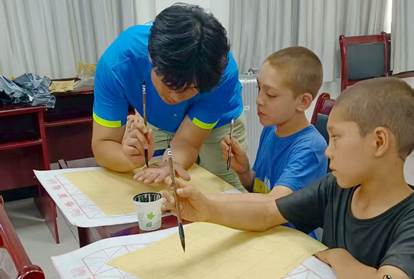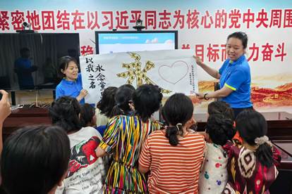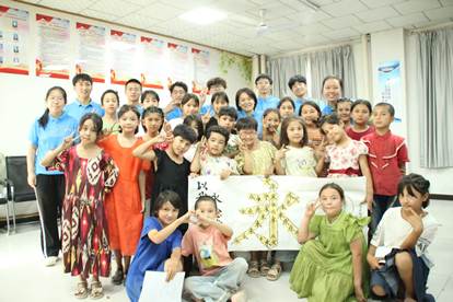 为深入推进鲁喀两地文化交流互鉴,让中华优秀传统文化在对口支援工作中焕发新活力,7月25日,向“疆”来·向未来志愿服务队在疏勒县瑞丰5村开展了“以我之名·永念党恩”软笔书法和播音主持活动。我们带着对传统文化的热忱,通过挥毫泼墨书写红色经典、声情并茂朗诵时代华章的形式,与当地小朋友们以笔为媒、以字传情,以声会桥、以诗会友。