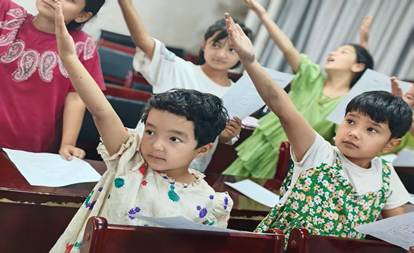 在实践环节,小朋友们个个挺直腰板,全神贯注地临摹“永”字八法,努力将老师所讲的技巧运用到书写中。老师则穿梭在孩子们中间,耐心地一对一指导,纠正不规范的书写动作。“小背要像铅笔一样直哦,这样才能写出漂亮的字。”老师温柔的提醒声不时响起。