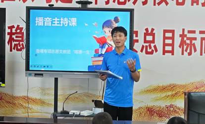 下午,支教团成员张粟凯为员工们带来了一堂干货满满的播音主持课。从站姿要求、面部表情管理、口部操、开声等方面进行详细讲授。最后课程进入美文朗诵环节,朗诵篇目为《党啊亲爱的党》,同学们的声音中充了对党的崇敬与热爱,也展现出在播音主持学习方面的初步成果。