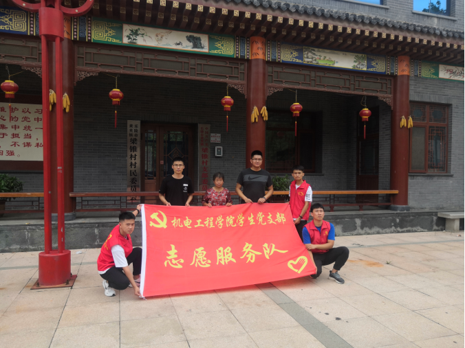图为服务队员在梁锥希森村村民委员会前拍照留念中国青年网通讯员李皓男供图