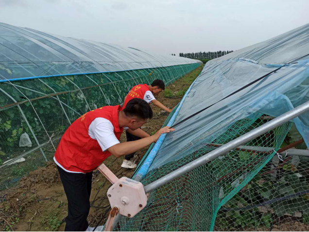 图为服务队员在检查大棚结构情况中国青年网通讯员李皓男供图