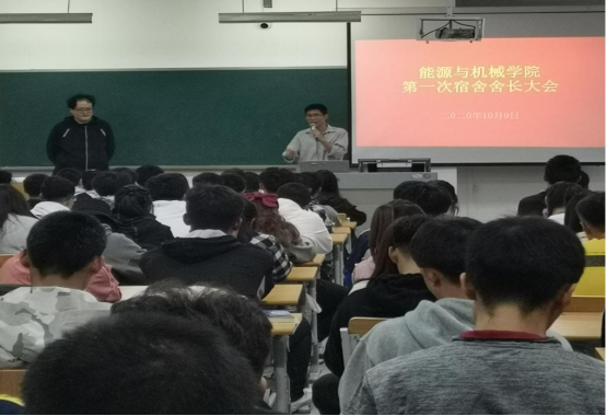 此次大会,分别由团总支书记(员工科长)王志坤和辅导员董天予主持会议,相关部门负责会前准备工作、维持会场纪律。两位老师就宿舍安全卫生提出了以下建议和要求: