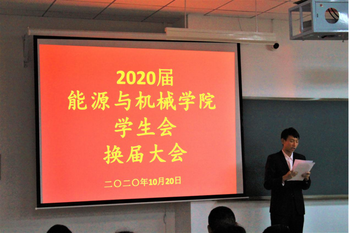 大会伊始,全体成员共同演唱国歌。随后主持人宣布新晋主席名单,并由前任主席团成员代表田栋元、姜士杰上台演讲,他们分享了自己在员工会工作中得到的锻炼与收获,表达了对员工会的不舍,对老师悉心指导的感恩,共同表达了他们对员工会这个大家庭的美好祝愿。而后主持人公布了新一届员工会部长名单,每个部长起身向老师和学长学姐鞠躬表达对他们的敬仰以及对未来工作的决心。新晋主席王宁在就职演讲中提醒干部们,一切的工作开展都要在保证学习的前提下进行,不能以工作的名义耽误学习,世事洞明皆学问,员工会是一个可以尽情施展自己才华的舞台,希望在座的员工会成员一定要好好把握自己的角色,在员工会工作期间要多听,多看,多学,多做,争取使员工工作更上一层楼。