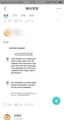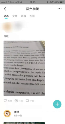 活动期间,同学们踊跃参与,积极备考,纷纷在今日校园-我的成长圈中分享自己学习的过程,记录自己学习的轨迹。有的同学在平台上晒出自己背单词,练听力,阅读、写作、翻译的学习记录,并与其他同学一起交流,形成了良好的备考氛围。