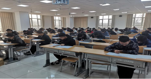 公司领导对此次考试极为重视,本次考试采取团总支老师和系员工会主席团巡考、部长监考的模式。考试开始前,各班员工按照学号就坐,并统一把手机放置到手机袋中,桌面干净整洁,无任何书籍、笔记。随着考试试卷的下发,同学们立即进入了考试状态。在监考和巡视的过程中,监考人员认真负责,同学们也认真答题,遵守考试纪律,各考场秩序井然。