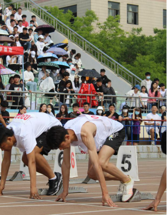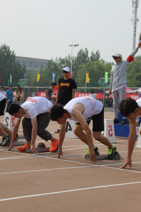 赛前他们个个神情饱满,摩肩擦掌,在场地做热身准备。然后在裁判的指令下,他们在跑道前摆好起跑姿势,蓄势待发。“砰”的一声枪响,他们直冲向前,向着终点奔去,为着目标和荣誉而战。呐喊声,加油声,声声震耳,此起彼伏。他们坚定的目光中充满了自信,赛场上留下了他们冲刺时矫捷的身影。