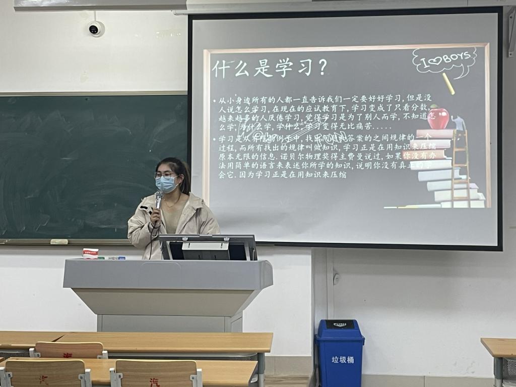 活动开始,学长,学姐进行了自我学习经验的交流与总结,他们的精彩发言使会场不时引发阵阵掌声。紧接着,同学们踊跃地提问咨询,各抒己见,各位学长学姐也为他们悉心解答,相互探讨;此次活动在轻松活跃的气氛中结束。本次学习经验交流会本着督导并存的原则,对于21级同学有很大的教育意义。通过听取此次学习经验交流会,同学们还认识到,大学学习的范围很广,我们不应该只满足于专业知识,更应该做一个全面发展的高素质人才。