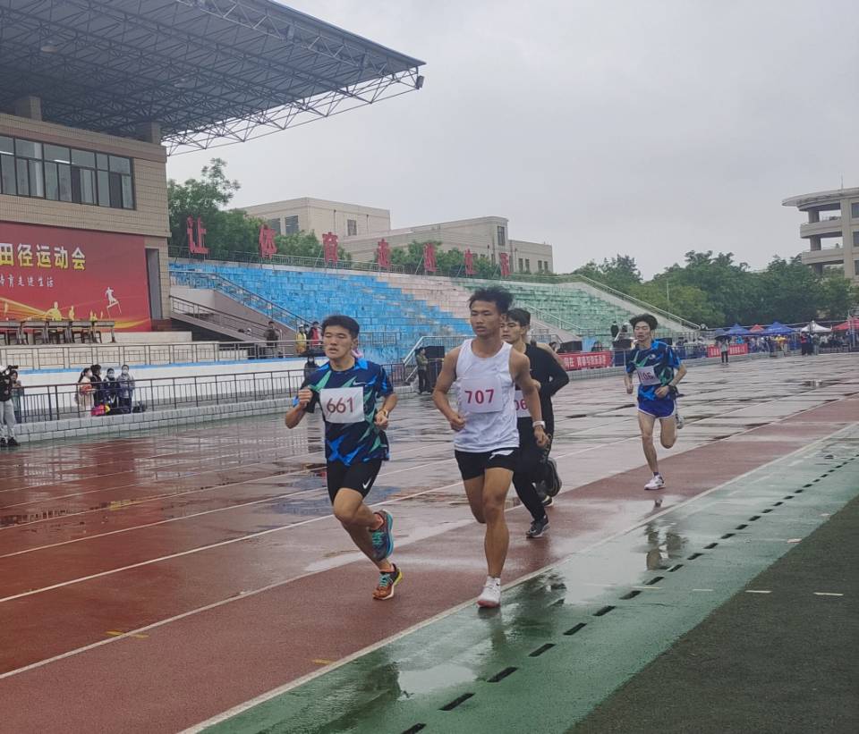 红白相间的跑道上,运动员整齐有序地站在起跑线上,蓬勃的力量将他们的身体变成了蓄势待发的弓箭,枪响后,他们冲出起跑线,在红色跑道上奋力奔跑。势如破竹的力量化作他们脚下沉稳的步伐,点燃了赛场上的热情。比赛中,运动员们奋力拼搏,努力赶超。长跑是考验运动员体力和毅力的项目,1500米的赛道,是六分钟的坚持不懈,是风雨无阻的奋勇向前。