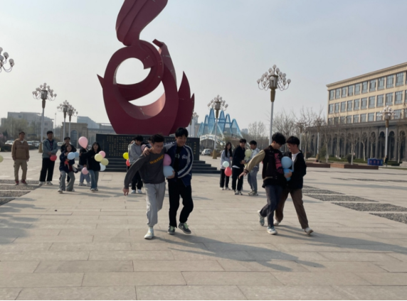 气球爆炸代表着社恐消失,纸条上的励志语句则是对大家美好的期许,希望大家在学习上相互鼓励、共同进步。