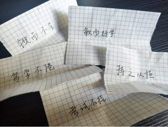 在“纸片寻踪记”活动环节,主持人在活动开始前会随机给路人带有持之以恒、锲而不舍、笃学不倦等四个字的规定纸片。主持人宣布活动开始后,每组同学开始和路人对接,寻找纸片。