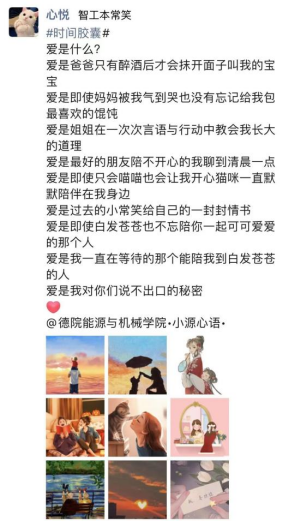 最长情的告白,不是山盟海誓,而是彼此的关爱和陪伴。在本次活动中,我们以发送朋友圈的形式展示每个人对爱的理解,让同学们可以深入体会爱的意义和力量。我们相信,这场主题的线上活动能够成为你人生中的有意义的一天,也能够让你深刻地认识和理解爱。