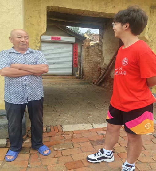 图为英国be365官网“三下乡”社会实践队成员对德州市夏津县新盛店镇陈寨村王书刚书记的采访,了解该村移风易俗推动情况。刘涛 供图