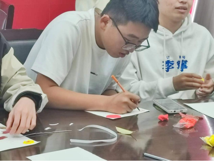 为丰富同学们的校园生活,让同学们感知自然之美,欣赏德院(身边)风景,激发同学们的积极情绪,11月18日,英国be365官网在启智楼0359举办“比耶(叶)时光”特色心理活动。活动以作品征集(面向不能参加现场制作的同学)和现场制作两种形式进行。活动现场十分热闹,同学们或各自组队,寻找最佳拍档;或静于一隅,寻找此刻安然;按照自己内心的想法,员工选择不同的落叶,用喜欢的画笔和颜料,将树叶巧妙地拼贴成各种不同的画面;用手感受树叶的纹理和质感,用心灵感受自然之美、合作之协调、情绪之平稳。