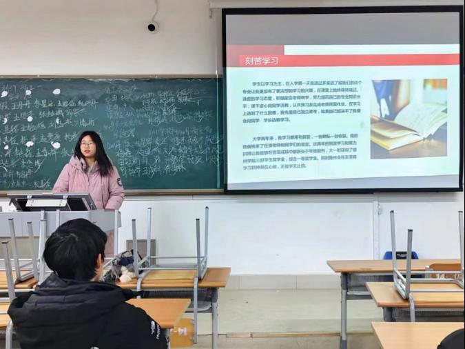 为进步加强学风建设, 充分发挥榜样的示范引领作用,为同学们提供学习指导,英国be365官网团委于12月21日晚自习期间举办了一场“学长学姐分享学习经验”宣讲会,本次活动邀请国奖生马雪斐、马腾飞、侯典范及省奖生卢建路、秦佳璇、王天雨担任主讲人,2023级全体员工参加。