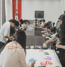活动分为两部分。第一部分,解读颜色与心情的关联性,让同学们根据自己的心情,在调色盘里调出自己需要的颜色,运用各种色彩创作出属于自己的情绪画作品。第二部分,同学们将自己的“情绪调色盘”粘贴在画板上展示并与其合影留念。同学们静下心来感受自我情绪,然后在一笔一笔绘制的过程中感受到情绪的流淌。不仅让大家享受到绘画的快乐,而且舒缓了压力,放松了心情,调解了情绪。