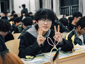 本次活动分为两部分。第一部分为接力画猜词。十个人为一组按顺序排成一列,第一个人依据所给主题作画,并传给第二个人,再由第二个人根据看到的画继续作画,并传给第三个人,以此类推,若最后一个人能猜对主题,则该队获胜。同学们在轻松活跃的氛围中交流互动,缓解紧张情绪,激发参与热情,促进团队融合。第二个部分为百变扭扭棒。工作人员会向同学们发放一定数量的扭扭棒,同学们可以做扭扭棒花朵、中国结、蝴蝶、星星、爱心等等,棒棒相交,结点相合,编织出独属于自己的特色图形,同学们在亲手制作中抚慰心灵,不断治愈,共同体会人生喜乐。