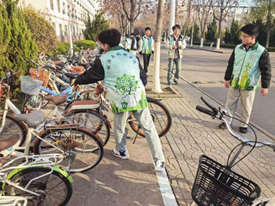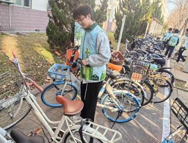 活动中,志愿者们化身为校园秩序的守护者,细心地将未规范停放的自行车一一挪移到指定的停车区域,并整齐排列。志愿者们不仅以行动传递文明,还积极提醒骑车的同学们在使用完毕后自觉将自行车摆放整齐,共同维护美丽的校园环境。