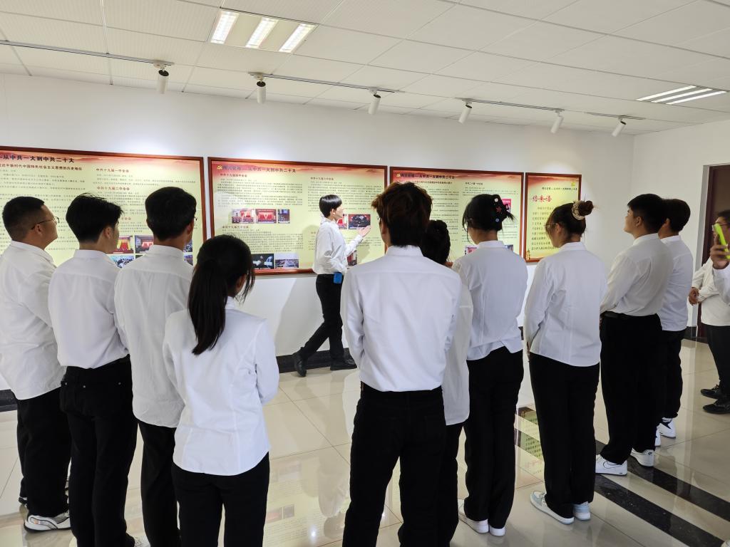 在讲解员的带领下,全体小青马们怀着肃穆而光荣的心情依次进入各楼层红色长廊进行参观学习。首先来到博文楼学习站点,青马班和讲解员共同学习了习近平给青年的寄语“青年兴则国家兴,青年强则国家强”。接着来到五楼的信仰长廊,讲解员向同学们讲述了中国共产党走过的百年历程和改革开放的故事,让同学们接受了一次厚重的党史教育。同学们仔细聆听、用心铭记,体会共产党战士敢于斗争、不怕牺牲的精神,深刻感受到共产党人坚如磐石的信仰力量。