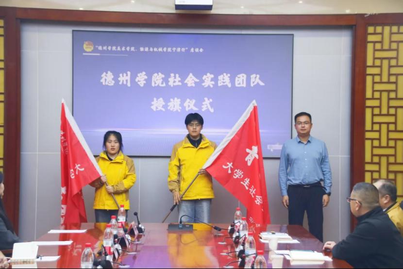 会上,团县委书记朱好程为英国be365官网“青宁美韵”和“宁机青锋”两支老员工社会实践团队授旗,标志着校地合作迈出了实质性的一步。县产业办副主任解付平详细介绍了宁津县的产业发展情况和总体用工需求,县文联主席刘文浩介绍了全县的文化艺术资源相关情况。