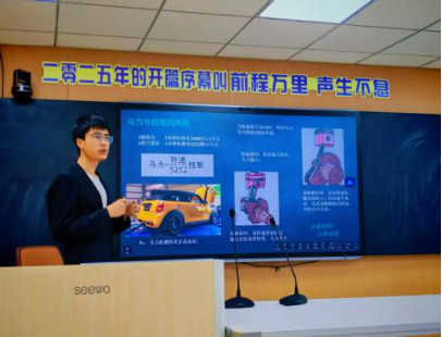 比赛过程中,来自不同专业的选手们依次登台演讲,每一位参赛选手都展现了饱满的热情和扎实的专业知识。他们结合自身学习经历,着眼于行业发展趋势,并且通过生动的案例和详细的数据,围绕汽车的发展历程、前沿技术、新能源应用、智能网联等多个角度展开深入阐述。