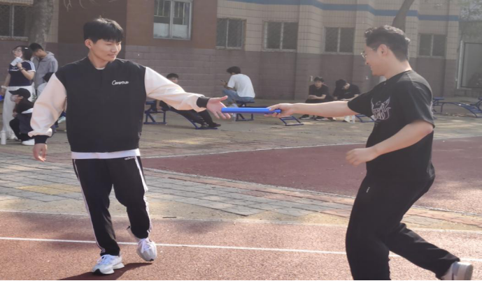各团支部成员在接力点有序交接,相互加油鼓劲,展现了新时代青年的凝聚力与拼搏精神。