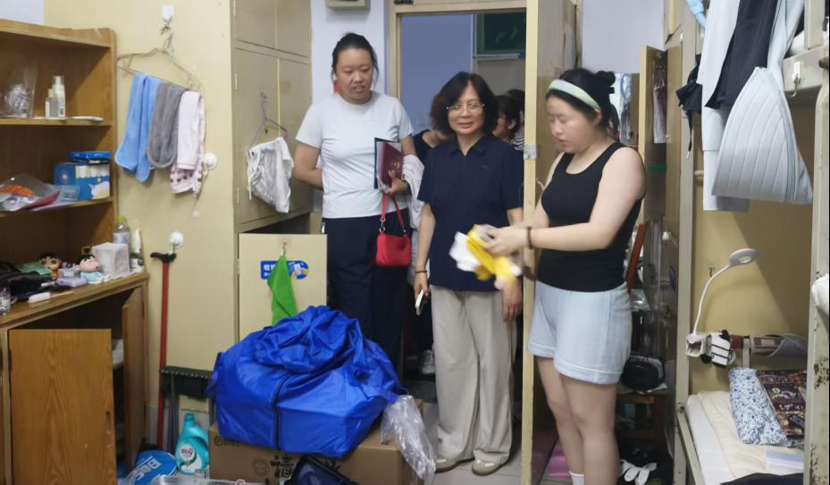 走访过程中,老师们同步开展宿舍安全卫生专项排查工作,对宿舍用电用火安全、环境卫生状况进行细致检查。反复叮嘱毕业生离校前要妥善整理个人物品,关闭电器电源、锁好门窗,确保离校环节安全平稳、井然有序。