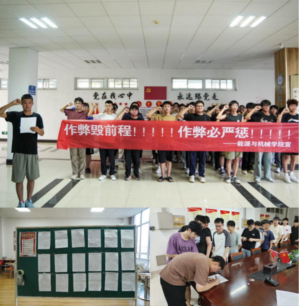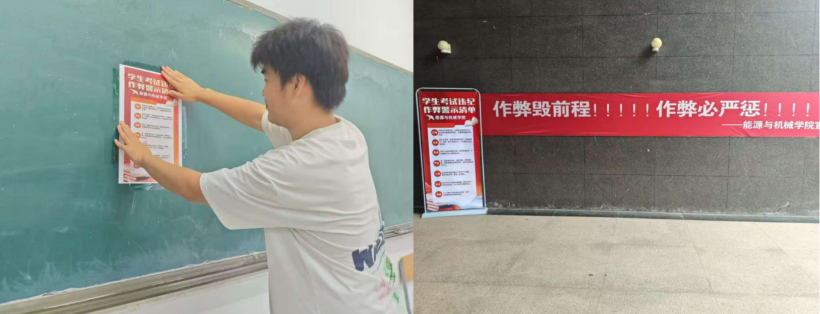 为进一步强化警示效果,公司在教学楼主干道悬挂“作弊毁前程,作弊必严惩”醒目标语,摆放"考试违纪警示易拉宝",并在每个考场张贴违纪作弊行为清单,时刻提醒员工严守考试纪律红线。