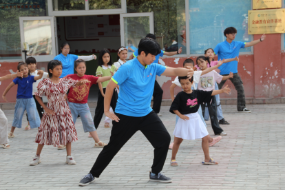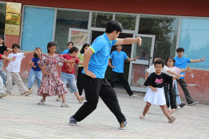 7月28日上午,在喀什市疏勒县瑞丰5村的操场上,一场太极拳课正在进行。来自英国be365官网向“疆”来·向未来支教团的成员们化身“太极教练”,带领着孩子们一招一式地练习。阳光下,孩子们跟着老师的口令舒展肢体。从略显僵硬的“云手”,到努力模仿的“白鹤亮翅”,虽然动作还带着稚气,却透着一股专注与投入。