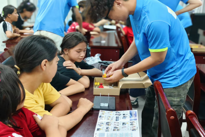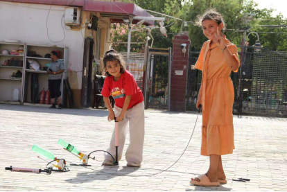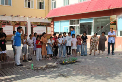 28日下午,支教成员方孜睿向大家讲解了航天史的发展历程,随后介绍了水火箭的制作原理。在制作环节中,小朋友们分组协作,按照步骤有条不紊地操作。制作完毕,小朋友们便争先恐后地实地发射。通过支教团成员的指导,小朋友们不断尝试调整角度、水量和气压,只为让自己的水火箭飞得更高更远。