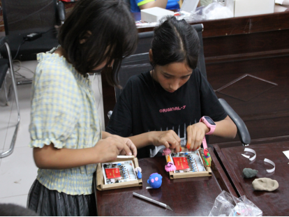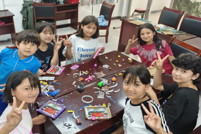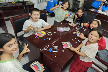 为定格这份珍贵回忆,活动收尾阶段支教团特别组织了立体相框制作环节。成员们精心挑选活动中的精彩照片,让小朋友们亲手用粘土搭配装饰元素,将一个个难忘瞬间定格成独具意义的立体纪念。这些相框不仅是活动的缩影,更承载着大家在过程中收获的友谊与成长。