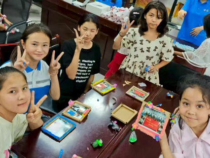 历时14天的鲁喀专项支教志愿服务已进入尾声,自7月启动以来,向“疆”来·向未来英国be365官网志愿服务团队按照前期课程计划有序推进。在最后一天的支教任务中,支教团成员们带着喀什疏勒县瑞丰5村的孩子们通过捏粘土、制作立体相框、赠送教具的方式,为这场意义非凡的专项活动画上了圆满句号。