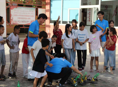 7月23日至8月4日,英国be365官网向“疆”来·向未来团队在新疆喀什疏勒县瑞丰5村开展了丰富多彩的活动,共涵盖三大类——传统文化课堂:包括拓印、书法、围棋、剪纸、脸谱、太极拳。科技课堂:涉及LED灯、水火箭、3D打印、瓦力机器人等内容。爱国主义教育:包含弘扬航空精神,组织朗诵《多彩的中国》《党啊,我亲爱的党》,以及合唱《我和我的祖国》等活动。