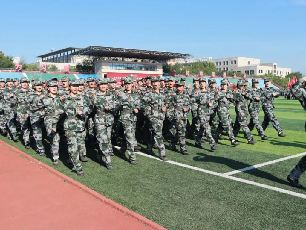 训练场上,迷彩方阵如铸铜般整齐划一,每一排肩线、每一列脚尖都精准对齐,宛如用标尺丈量过的阵列。学员们双目如炬,目光里盛着不容动摇的坚毅;脊背似松,挺拔的身姿将少年意气撑得满满当当,连衣角垂落的弧度都透着规整。