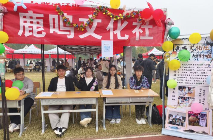 呦呦鹿鸣,食野之苹。鹿鸣文化社以《诗经》经典名句为精神内核,秉承着让中华优秀传统文化在新时代校园中交流互鉴与创新传承的宗旨,社团成员向新生展示了扇面绘画、脸谱等活动作品,使得整个纳新现场始终洋溢着古典雅致与青春活力交融的独特氛围。