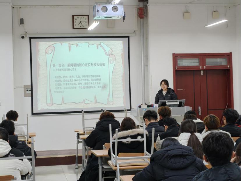 承担学风建设重任的学习部,针对新闻稿撰写的严谨性展开培训。部长李欣倩紧扣新闻稿“时效性、客观性、规范性”的核心要求,从标题拟定、导语撰写、主体架构到语言表达逐一讲解,通过正反案例对比,让干事们深刻理解新闻稿作为官方信息载体的重要意义,明晰撰写要点。