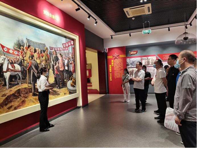 在讲解员的指引下,大家依次参观了该基地的“渤海建军 守卫家园”、“战旗西指 铁血万里”、“铸剑为犁 屯垦戍边”、“英载史册 精神不朽”四个部分。通过音像播放、VR体验等形式,仔细观看革命历史图片,认真聆听革命先烈的英雄事迹,深刻感悟到“大义大爱、无私奉献、听党指挥、永葆信念”的山东渤海军区教导旅精神。全体党员面对展区宣誓墙,重温入党誓词并庄严宣誓,表达为党的事业奋斗终身的决心和坚定信念。