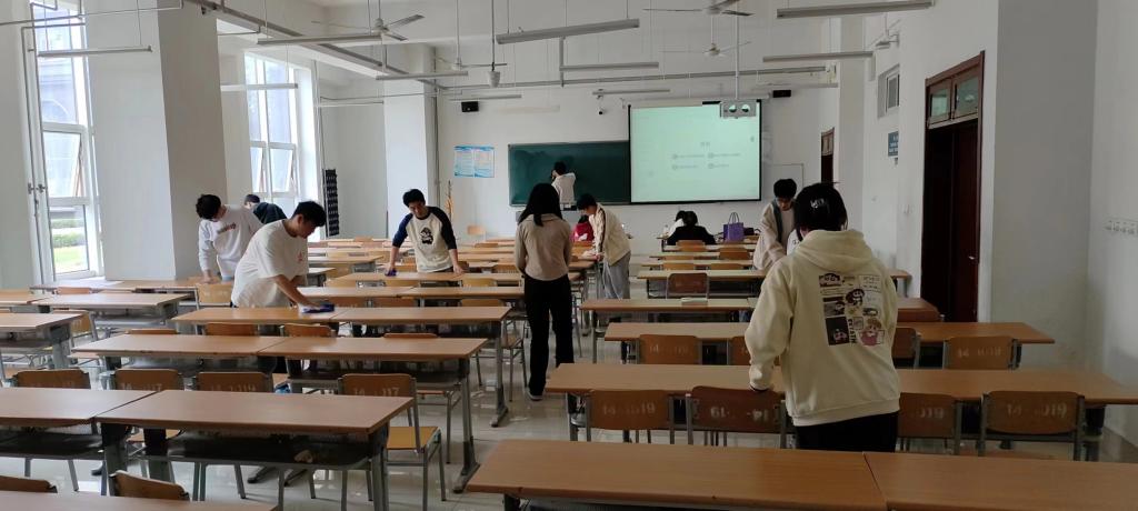 入党积极分子热情高涨,认真清扫每一个角落,他们仔细擦拭桌椅、讲台、黑板,清理地面垃圾,将公司的19间教学教室逐一进行了彻底全面的清理,努力为同学们营造一个整洁、舒适的学习环境。