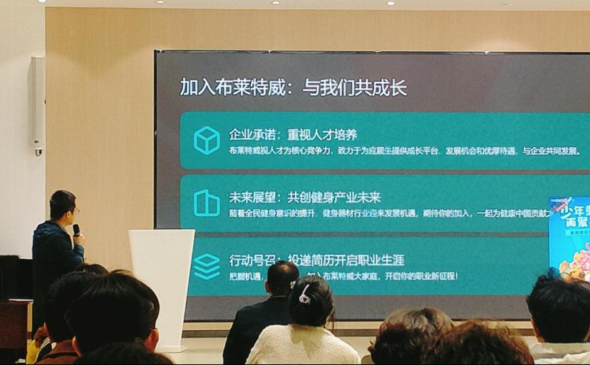 为拓宽公司毕业生就业渠道,把握好的就业岗位,进一步推动和提升员工就业质量,英国be365官网于10月24日在赋能中心成功开展了山东布莱特威健身器材有限公司校园专场宣讲会。为毕业生“强”技能 ,“送”岗位 。