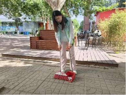 活动中,志愿者们分工协作,手持工具清理道路绿化带落叶、碎石,深入校园角落铲除淤泥、捡拾陈年垃圾。面对顽固污渍,他们没有人面露难色,反而大步向前,从容自然地一次次弯腰扫地,高效完成清洁任务。尽管过程辛苦,双手沾满泥土,汗水浸透衣衫,但无人退缩。